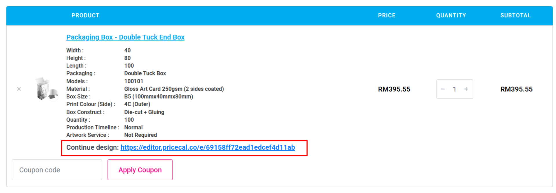 Click the “Continue Design” link to launch our online editor powered by Pacdora.